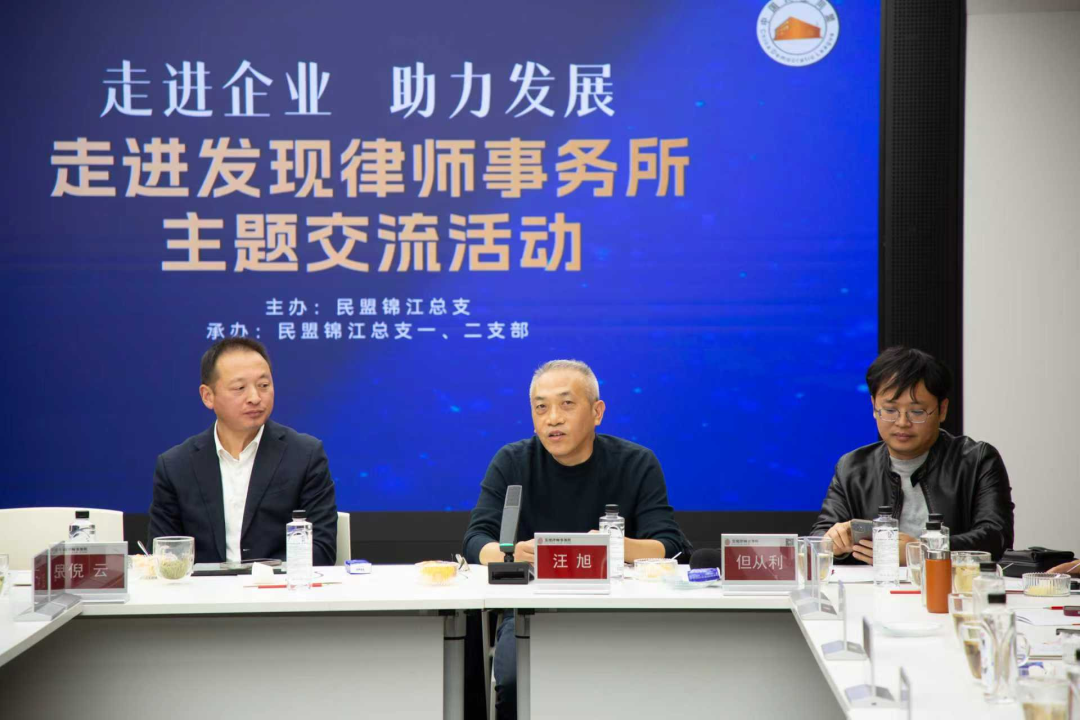 2025年12月12日,民盟成都市委会锦江总支“走进企业 助力发展”主题交流活动在发现律师事务所成功举办。民盟成都市委会但从利、民盟锦江总支主委汪旭、副主委刘晓琴、冯流英、总支委员王滔、一支部主委郭大鹏、二支部主委金黎及全体盟员共20余人参与,与我所同仁围绕企业法律风控与核心优势维护展开深度对话。