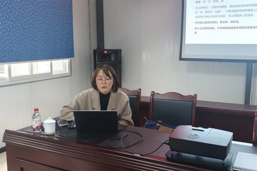 培训会由牟凤迪律师主讲,主题为《法律视角下医患权益的双维保护》。培训会上,牟凤迪律师围绕四大核心内容展开讲解:首先解读了医疗损害责任的最新变化,明晰了医疗行为中的责任界定要点;其次梳理了《民法典》中关于医患双方权益保护的核心条款,让医务人员精准掌握法律层面的权益与义务边界;再者强调了充分履行告知义务的重要性,结合案例讲解了如何通过规范告知流程降低医患纠纷发生率;最后针对病历书写与保管的规范性提出要求,明确了病历管理在防范法律风险中的关键作用。