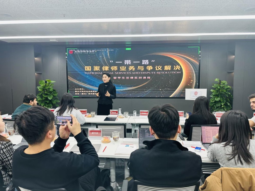 随着“一带一路”倡议深入实施及我国与沿线国家经贸合作持续深化,国际法律服务需求日益增长,律师业务与争议解决实务面临新机遇与挑战。为帮助重庆律师精准把握一带一路国家法律环境,提升国际商事争议解决实务能力,2025年12月2日,西南政法大学国际教育学院、西南政法大学金融法治研究院联合发现(重庆)律师事务所、重庆市律师协会跨境争议解决专业委员会,成功举办“一带一路国家律师业务与争议解决”专题讲座暨留学生实践课程。