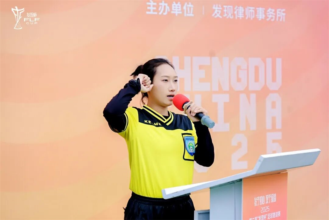 在嘉宾代表致辞环节,成都市政协常委、恒通资产评估公司总经理张引也表达了对本届赛事的热切期待与诚挚祝福。他首先感谢发现律师事务所搭建了这样一个“以球会友、共叙情谊”的精彩平台,让各参赛伙伴在绿茵场上从“同事”转变为“队友”,从“伙伴”升级为“战友”。他提到,“发现杯”已不仅是一场竞技,更像是一场温暖的聚会,让彼此在紧张工作之余,以更轻松的方式加深了解、巩固情谊。