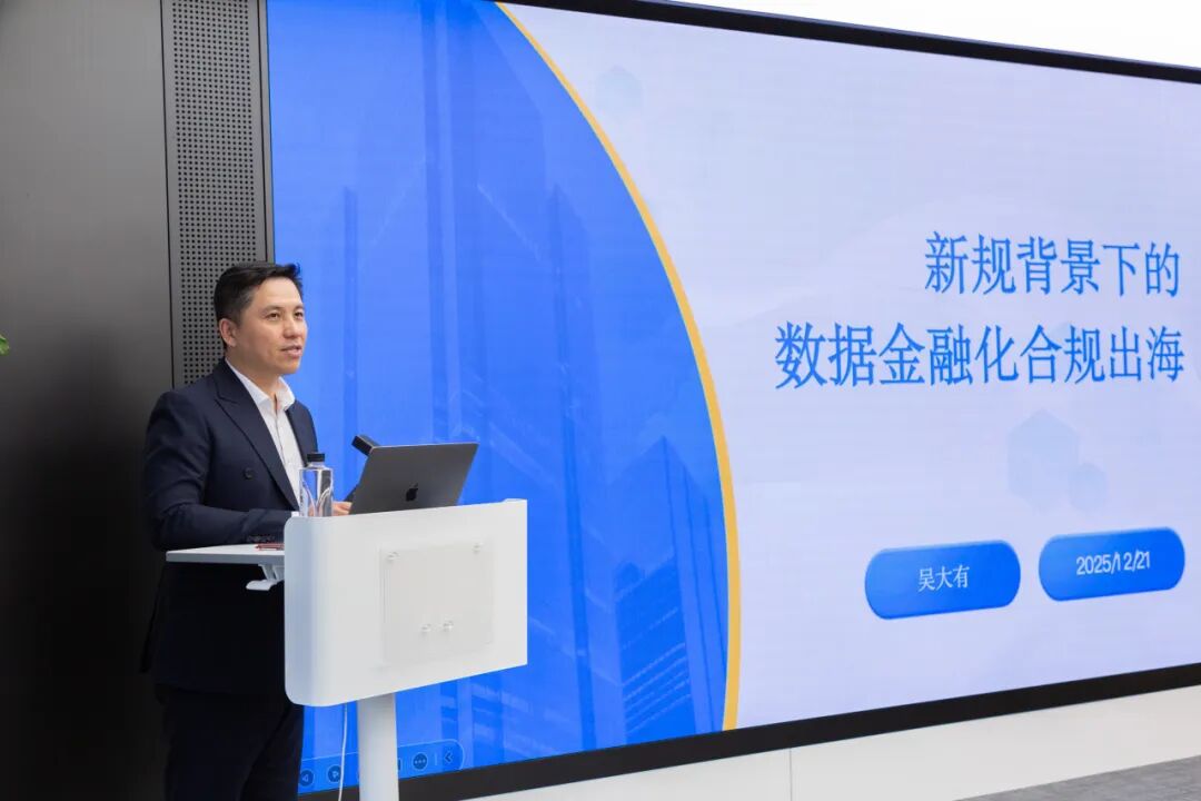 专题分享环节,剑桥大学博士后、港大北大交大等高校客座教授,全球数据要素五十人论坛主席吴大有博士带来了高屋建瓴的专业解读。深耕企业全球化与数据金融领域20年的吴博士,围绕“新规背景下数据金融化合规出海”这一核心主题,结合最新监管政策与国际实践,系统阐释了企业出海的范式转型与路径创新。他指出,2025年12月七家国家级行业协会联合发布的风险提示,标志着我国跨境金融监管进入制度化、常态化新阶段,企业必须彻底告别“代币融资”的旧路径,转向“数据金融化”的合规新范式——即在严守境内外监管红线的前提下,通过技术赋能提升资产数据的可信度与流转效率,将实体资产转化为全球资本市场认可的标准化金融产品,实现资产盘活与跨境融资的良性循环。