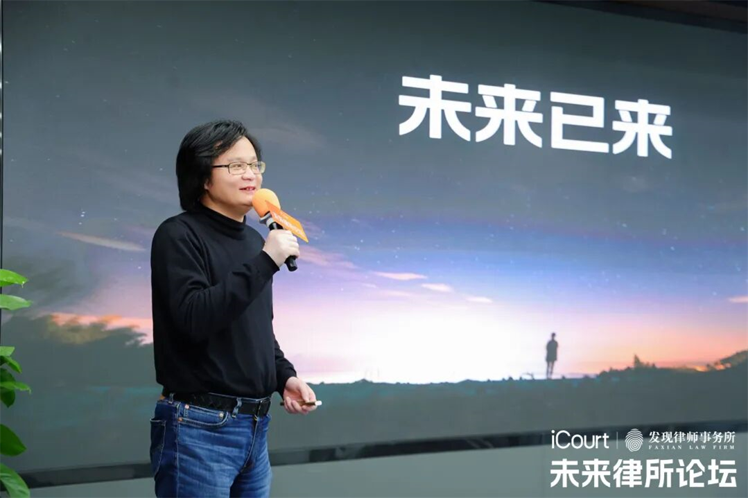 下半场环节,iCourt创始人胡清平围绕“新经济形势下法律服务的创新思维与市场拓展”发表演讲,从数据化、产品化角度解析行业趋势。