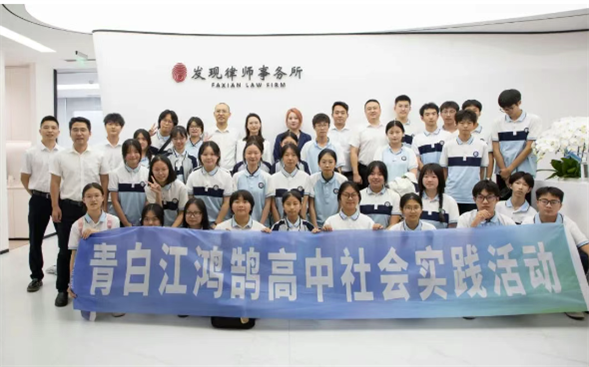 2025年6月6日,成都青白江鸿鹄高级中学50余名师生来到我所开展职业体验活动,近距离接触律师真实工作环境,深入认识律师职业状况、了解法律行业发展。我所合伙人王奇淋、合伙人李启泽、专职律师罗爽、专职律师刘瑞、行政主管邓亚等热情地接待了大家。