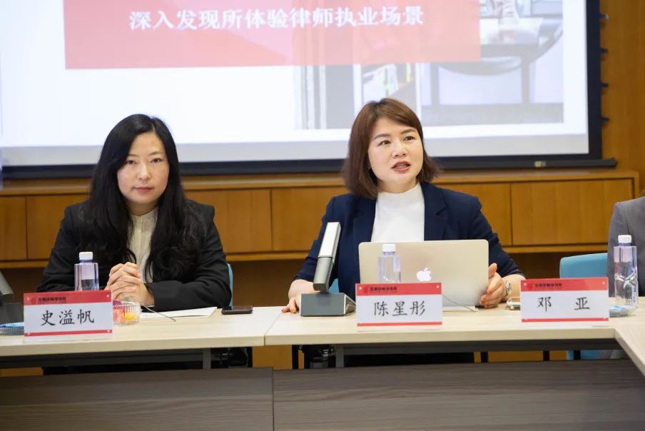 参观完毕,大家在法律讲堂进行交流。我所管理合伙人陈星彤对师生们的到来表示了热烈欢迎并为同学们详细地介绍了发现所的基本情况。