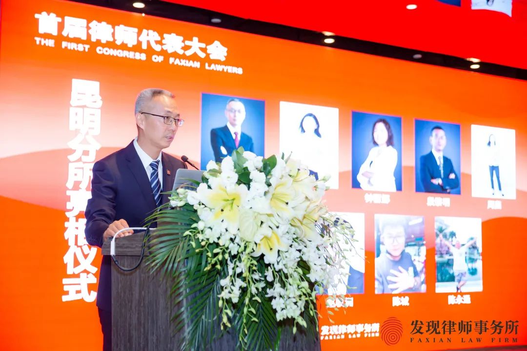 昆明分所(筹)拟任主任王顺新律师从自己的自身经历说起,讲述了对行业的发展和看法和带领大家建立分所的原因。他表示,没有什么困难可以阻挡发现人的脚步,在总所的坚实支持下,昆明分所(筹)信心满满,将迎头而上、共同进步、共同发展。