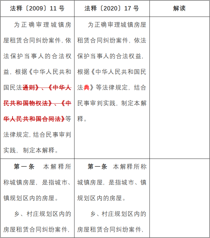 笔者将修正之处较2009年发布的《最高人民法院关于审理城镇房屋租赁合同纠纷案件具体应用法律若干问题的解释》(以下简称原解释)进行对比,并对所作修改、增删部分进行解读,以便对其进行准确适用。