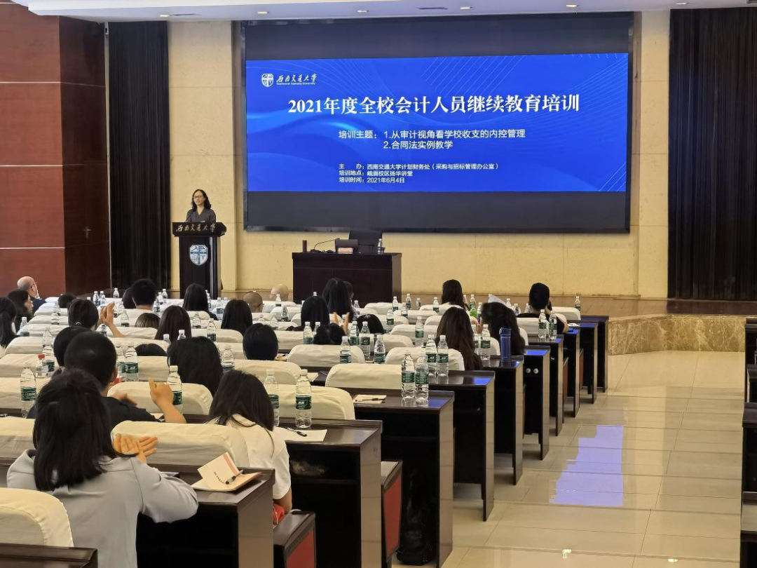 2021年6月4日,四川发现律师事务所高级合伙人向芳律师受西南交通大学的邀请,在该校峨眉校区为全校财务人员开展2021年度继续教育培训,培训主题为《合同法律风险防范—民法典合同编》。本次培训讲座,由西南交通大学计划财务处(采购与招标管理办公室)主办,西南交通大学计财处及全体会计人员参加了本次讲座。