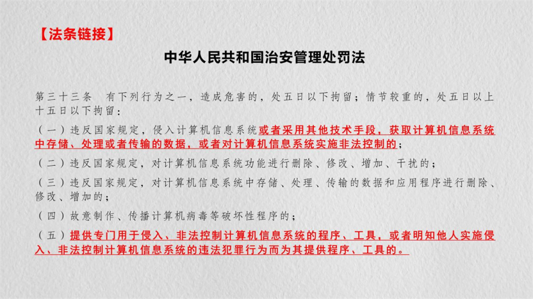该条在旧法“非法侵入计算机信息系统(如破解密码进入他人服务器)”基础上,新增三类行为的界定:一是“非法获取数据”(如未经授权提取系统中的用户信息、商业秘密、政务数据);二是“非法删除/修改/增加数据”(如删除企业财务数据、修改考试成绩、给他人系统植入虚假信息);三是“非法控制系统”(如通过木马、病毒远程操控他人计算机、手机、服务器)。
