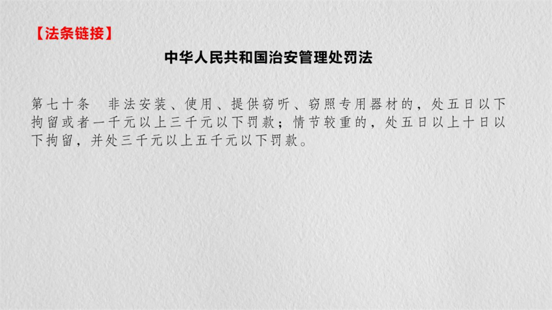 “非法使用”的界定标准为“未经他人同意,在私密空间(如他人住所、酒店房间、办公室隔间)安装器材,或在公共场所(如公交、商场)非法使用器材获取他人隐私信息(如偷拍他人身体隐私部位、窃听他人私人谈话)”,重点规制“偷拍隐私、窃听秘密”等侵犯公民隐私权的行为,解决此前“使用器材侵权但无处罚依据”的问题。