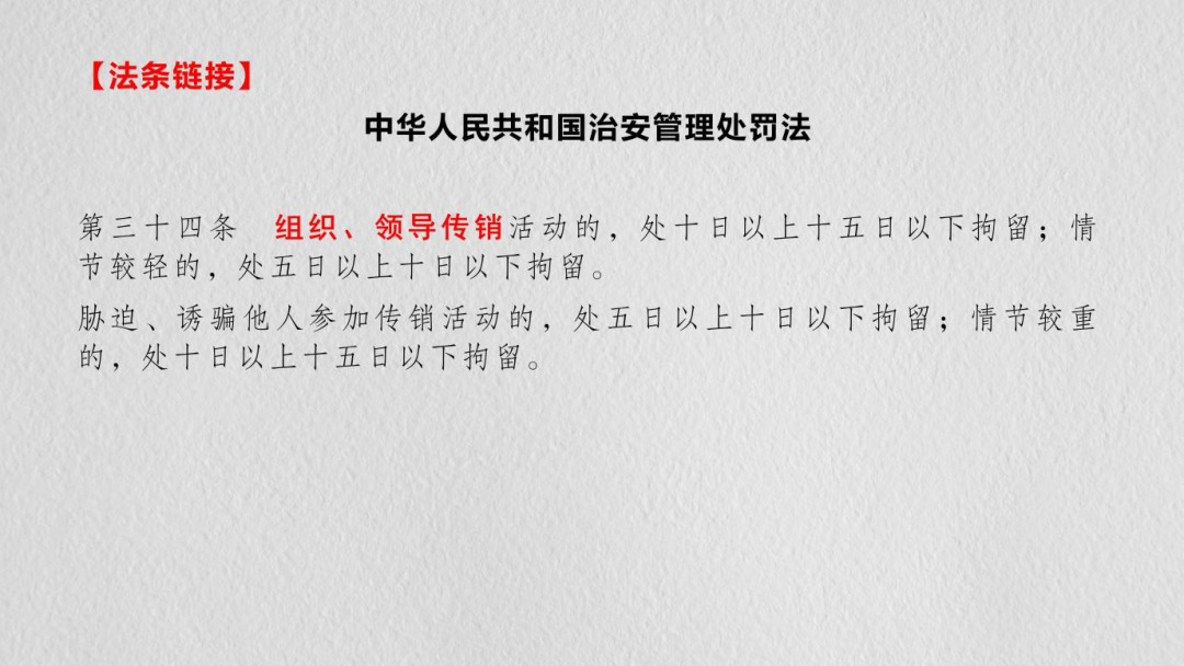 该条明确“传销行为”的核心特征为“拉人头、缴会费、层级返利”——即要求参与者缴纳费用或购买高价商品以获得加入资格,并通过发展他人加入获取层级式收益。“组织领导”的界定为“在传销组织中起策划、组织、管理作用的人员(如发起人、核心负责人、区域代理、培训讲师等)”,对情节显著轻微(如发展人员不足10人、未形成层级)的组织领导行为,公安机关可直接治安处罚,实现打击门槛前移,从源头遏制传销组织扩张。