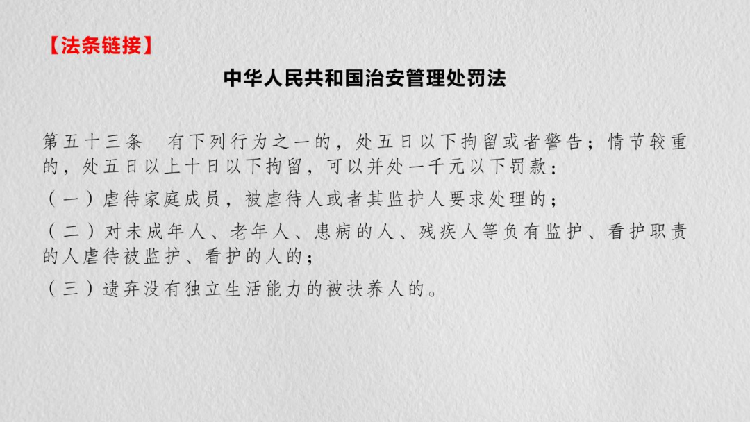 该条与《反家庭暴力法》联动,既覆盖家庭内部虐待,也规制机构(如养老院、福利院)中的虐待行为,强化对弱势群体的特殊保护。填补了旧法对非家庭场景下被监护、看护人虐待行为规制的空白,强化对弱势群体的特殊保护,明确监护/看护人的法律义务。
