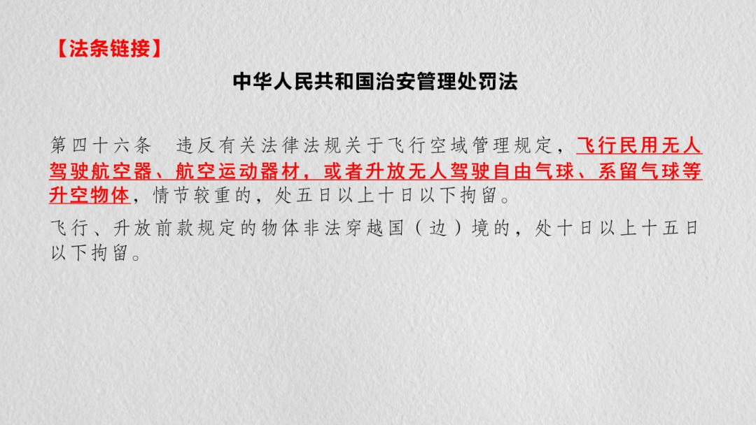 该条款为航空安全管控、重大活动安保提供明确执法依据,解决此前“多地禁飞但无统一处罚标准”的问题,规范“低慢小”航空器飞行秩序。