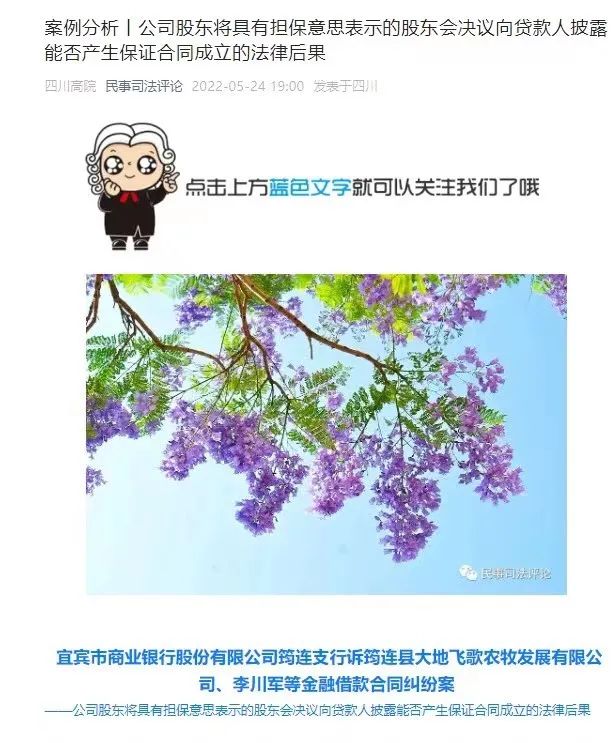 近日,发现律师事务所律师代理的一起二审改判金融借款合同纠纷案件被四川省宜宾市中级人民法院法官撰写为典型案例分析文章,发布于四川高院民事司法评论公众号。