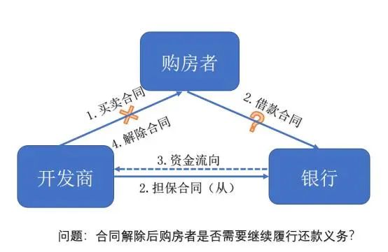 通过三方签订的合同可以分析,涉及买卖合同以及贷款(担保)合同双重法律关系。从合同内容来看,在商品房买卖合同中,购房者支付房款,开发商交付房屋;在商品房担保贷款合同中,银行将购房者所贷款项直接支付给开发商,开发商实际用款。从始至终该贷款均未经过购房者账户,购房者并不支配贷款,购房者基于对未来案涉房屋的期待,每月偿付贷款本息。如果案涉合同正常履行,购房者取得房屋,开发商缓解资金压力,银行赚取利息,三方均实现各自利益,皆大欢喜。