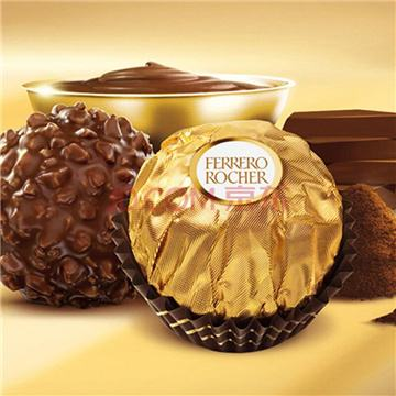 2.在金色球状包装上配以印有“FERRERO ROCHER”商标的椭圆形金边标签作为装潢;