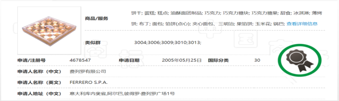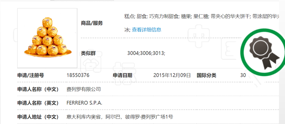 在国家商标局官网可以看到,费列罗对“费列罗FERRERO ROCHER”商品的外包装、装潢等各类标识都进行了注册,并且是有效存续状态,其他经营者没有经过授权不得进行使用。