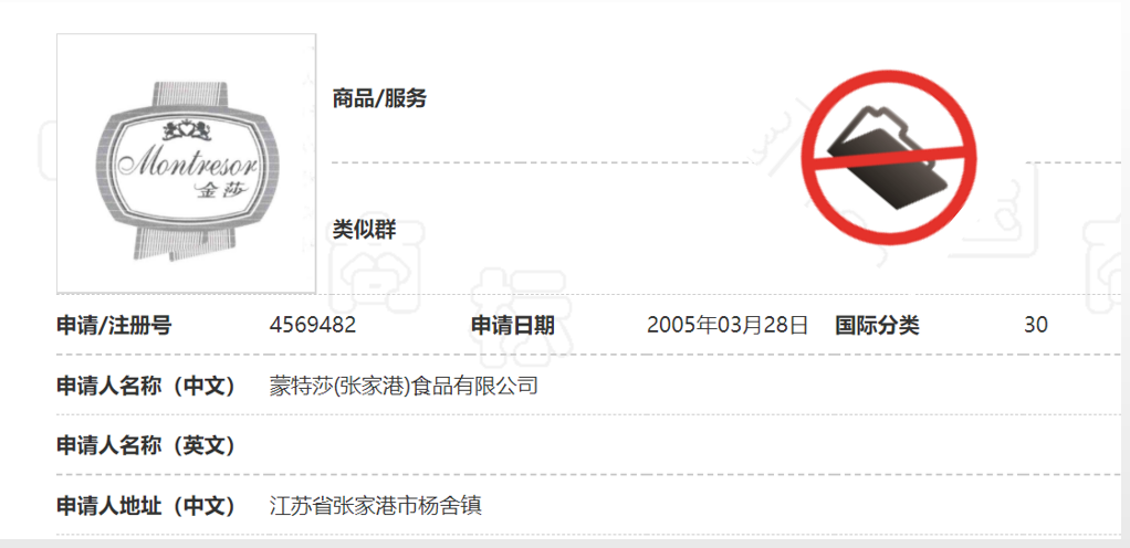 在国家商标局的官网进行查询,蒙特莎公司的“金莎TRESOR DORE”商标现在已经是无效状态。