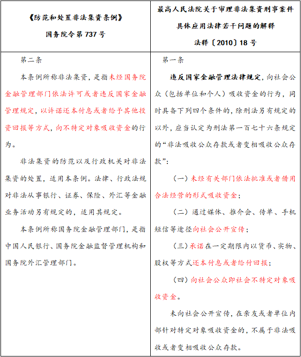 定义“非法集资”在《条例》和司法解释中的要件厘清