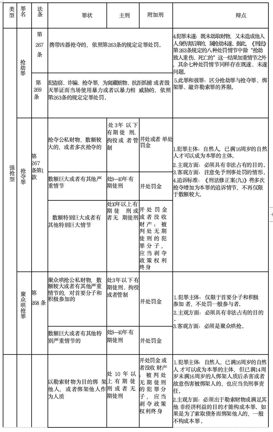 (二)暴力类犯罪《刑法》规定对照表