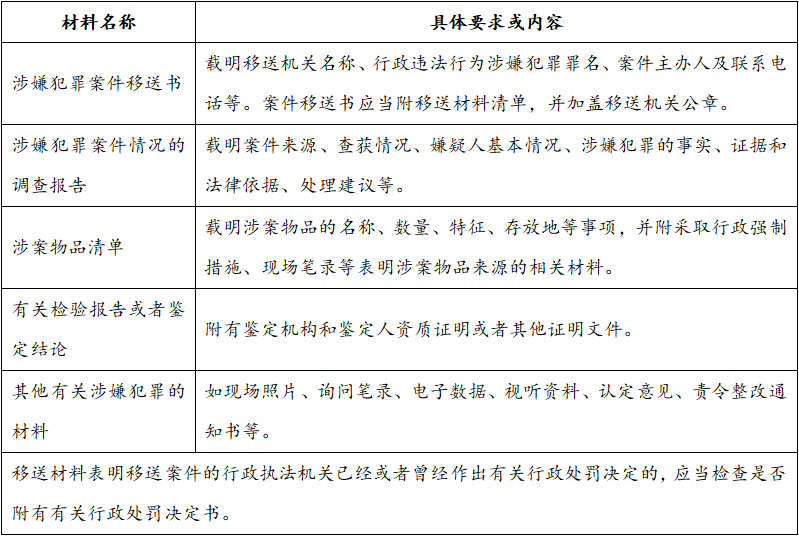《移送案件的规定》第三条规定“行政执法机关在依法查处违法行为过程中,发现违法事实涉及的金额、违法事实的情节、违法事实造成的后果等,根据刑法关于破坏社会主义市场经济秩序罪、妨害社会管理秩序罪等罪的规定和最高人民法院、最高人民检察院关于破坏社会主义市场经济秩序罪、妨害社会管理秩序罪等罪的司法解释以及最高人民检察院、公安部关于经济犯罪案件的追诉标准等规定,涉嫌构成犯罪,依法需要追究刑事责任的,必须依照本规定向公安机关移送。”在此基础上,就行政机关随案移送的证据材料如何认定及适用的问题,最高人民法院关于适用《中华人民共和国刑事诉讼法》的解释(以下简称《适用刑诉法的解释》)第七十五条作出了明确规定,即“行政机关在行政执法和查办案件过程中收集的物证、书证、视听资料、电子数据等证据材料,经法庭查证属实,且收集程序符合相关法律、行政法规规定,可以作为定案的根据。”