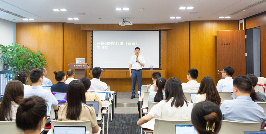 2022年6月24日,十三届全国人大常委会第三十五次会议对《中华人民共和国民事强制执行法(草案)》进行了审议并发布草案全文,向全社会征求意见,事务所董事局主席罗毅、执行主席王春生对此高度重视,要求执行与保全专业委员会第一时间组织学习并作出积极响应,发出发现最强音。
