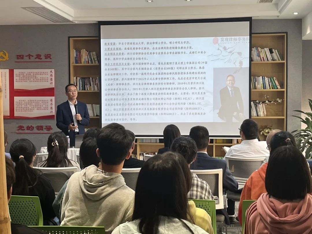 为进一步加强律所自身建设,有效提升律师专业水平与服务能力,促进律师工作高质量发展,发挥教育实践基地的良好作用,2022年5月19日下午,我所合伙人律师彭兴国律师前往发现(宜宾)律师事务所(以下简称“宜宾分所”)开展以《诉讼与仲裁的攻守道》为主题的业务学习活动,在宜宾分所会议室为来自宜宾学院的20余名学生和宜宾分所全体人员倾情分享。