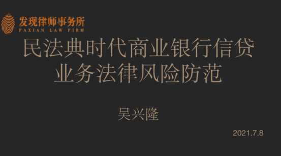 培训开场吴兴隆律师首先着重讲解了信贷合同面签的重要性,分析了面签过程中常见的各种风险,并结合银行现有业务介绍了远程面签时应该注意的事项。之后,吴兴隆律师通过九民纪要和民法典与信贷业务相关的21个问题,结合案例,一一向与会人员进行了深入浅出的分析与讲解。
