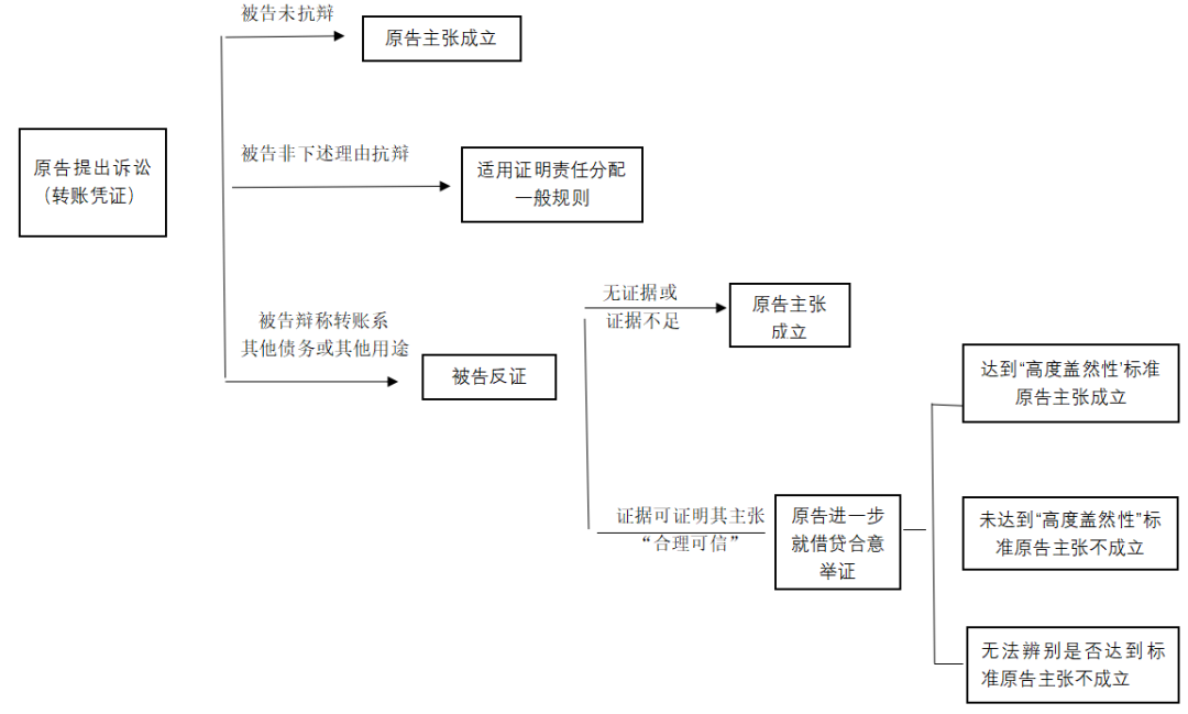 2. 仅有转账凭证,双方间借款合意证明力不足,原告方将承担败诉后果,但可视情况请求不当得利返还。