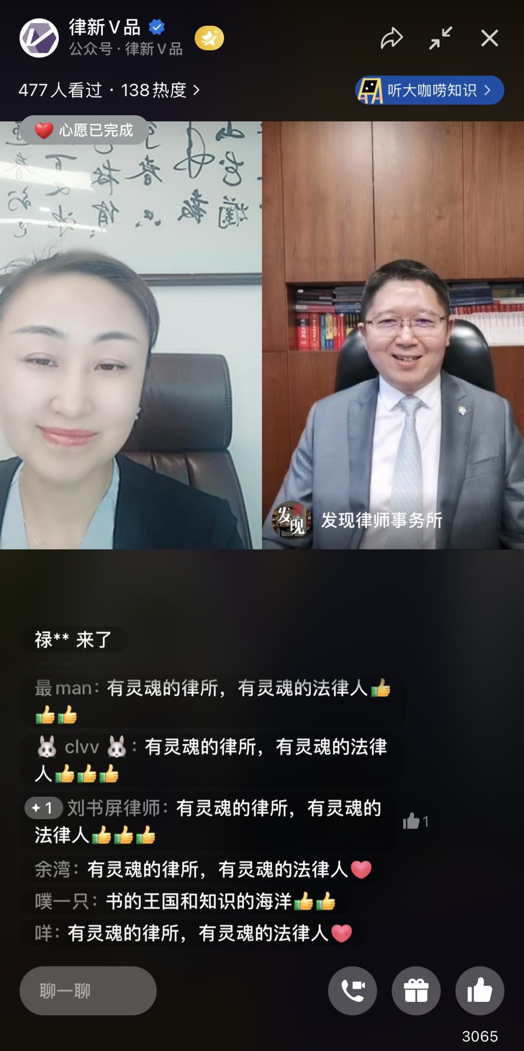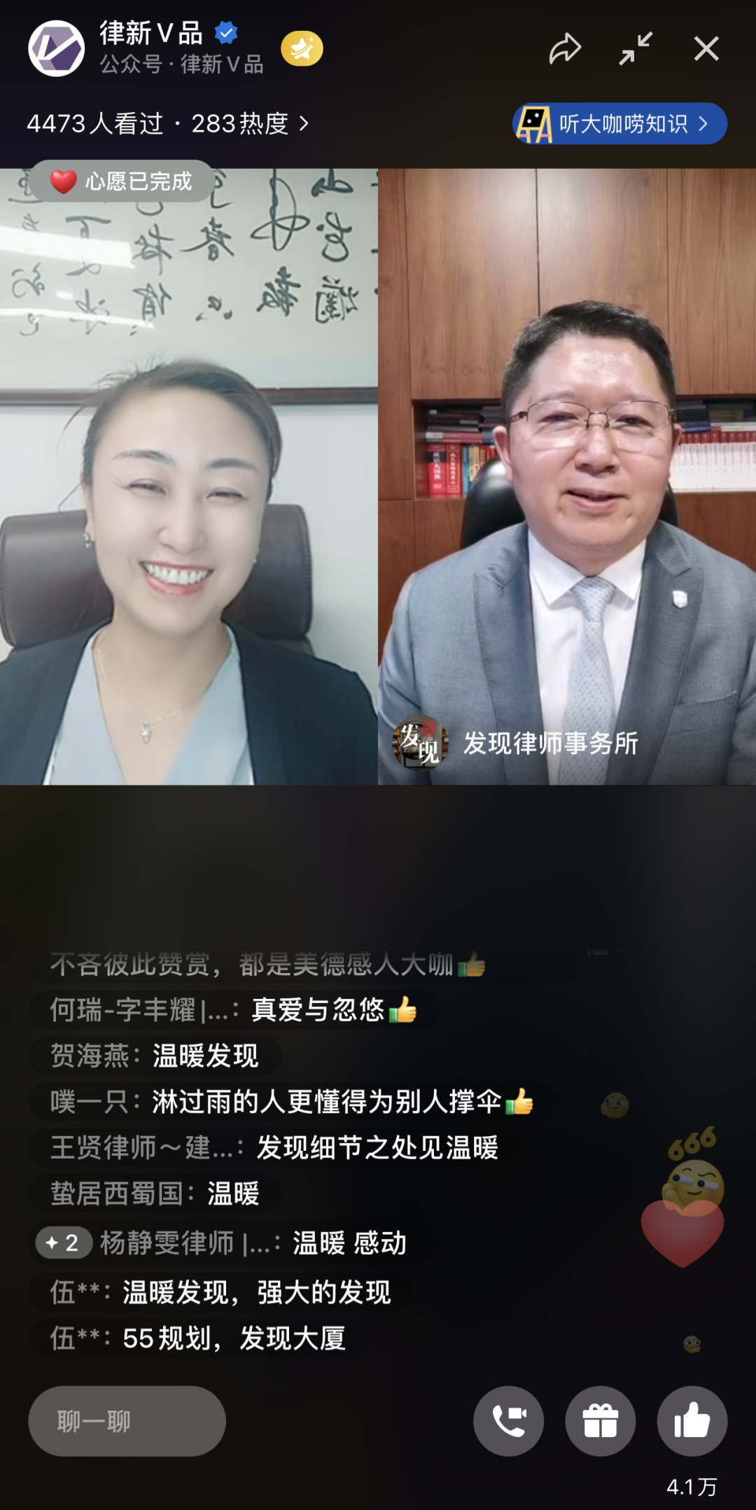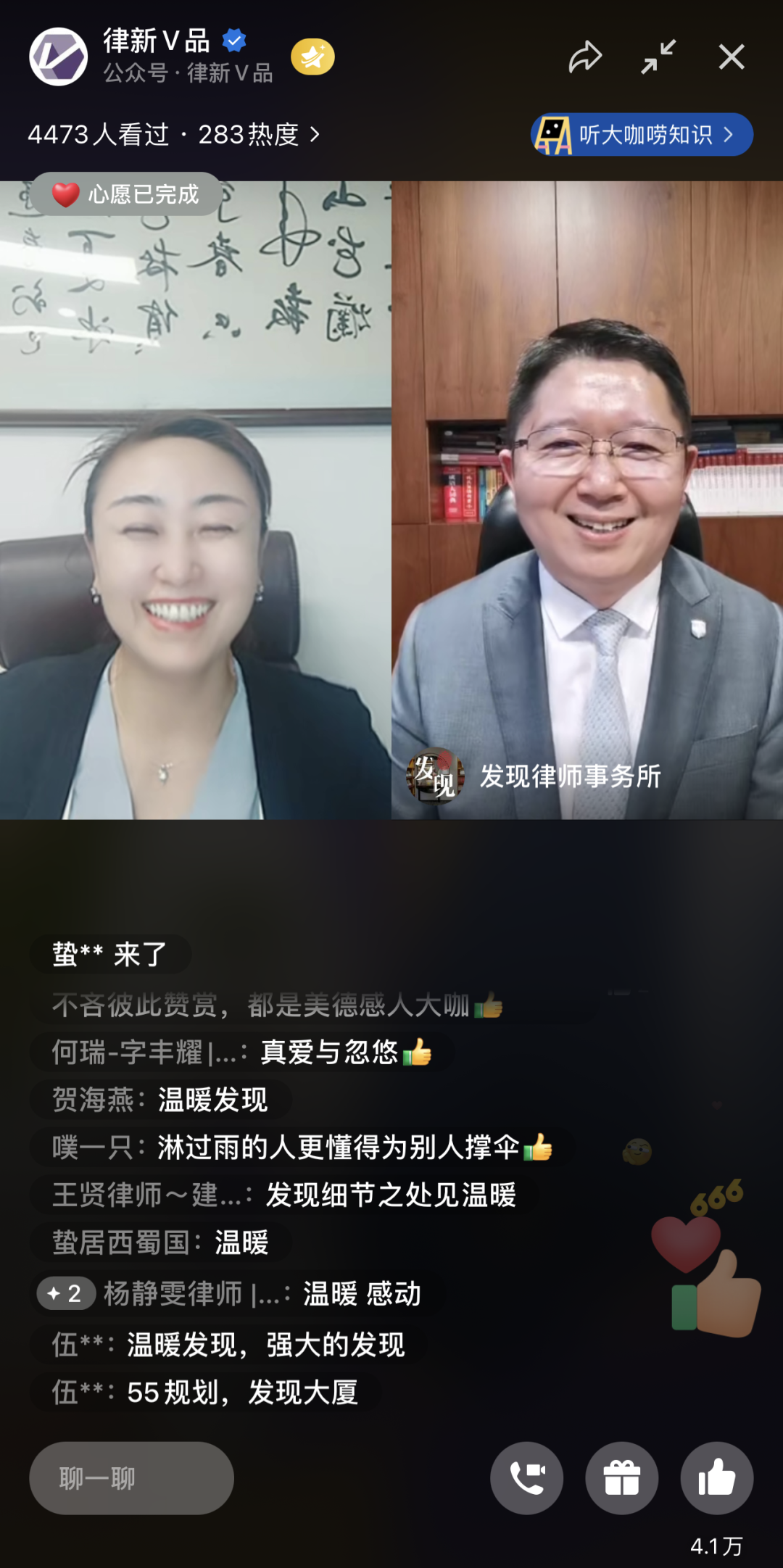 此次直播分享干货满满。直播间氛围热烈活跃,观众互动热情高涨,弹幕不停,在线观看人数达到4500+人,点赞超过4.5w+。随着信息化、智能化的网络时代的来临,短视频平台逐步崛起。今后,我所还将通过线上直播形式开展各类主题活动,敬请关注!