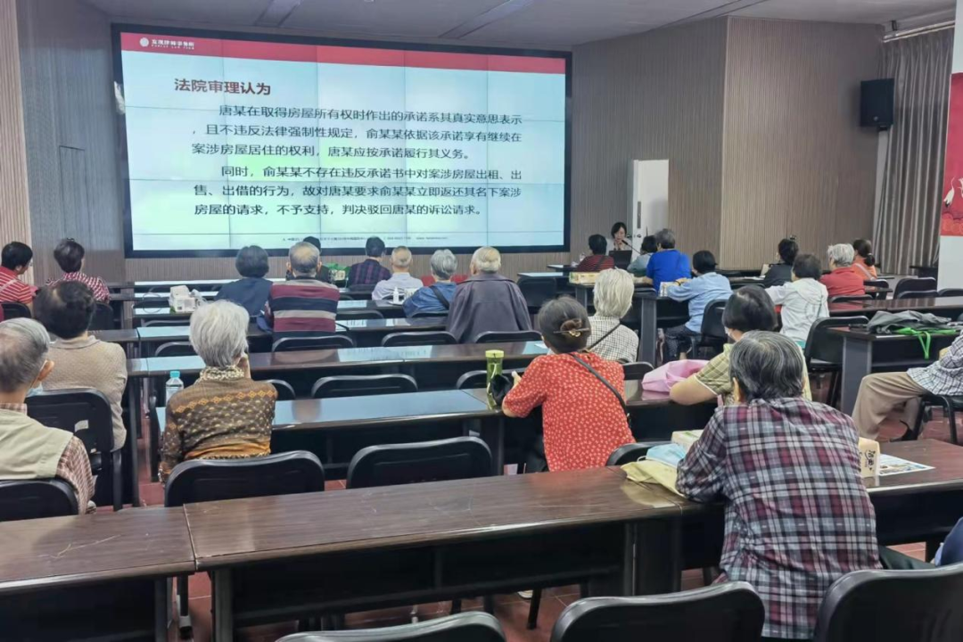 我所陈容律师以《民法典-老年人权益保护与家庭财产的保护、传承》为题,通过几个典型而生动的案例,讲解了民法典关于居住权、成年人意定监护、遗嘱继承、老年人财产权益保护等几个方面的规定,帮助老年人在规划养老及家庭财产的保护与传承中,更好地理解并运用法律工具来有效保护自身权益和财产。