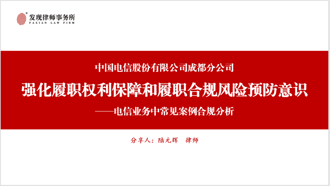 发现资讯 || 发现律师应邀为成都电信新入职员工作履职权利保障和履职合规风险预防的专题培训