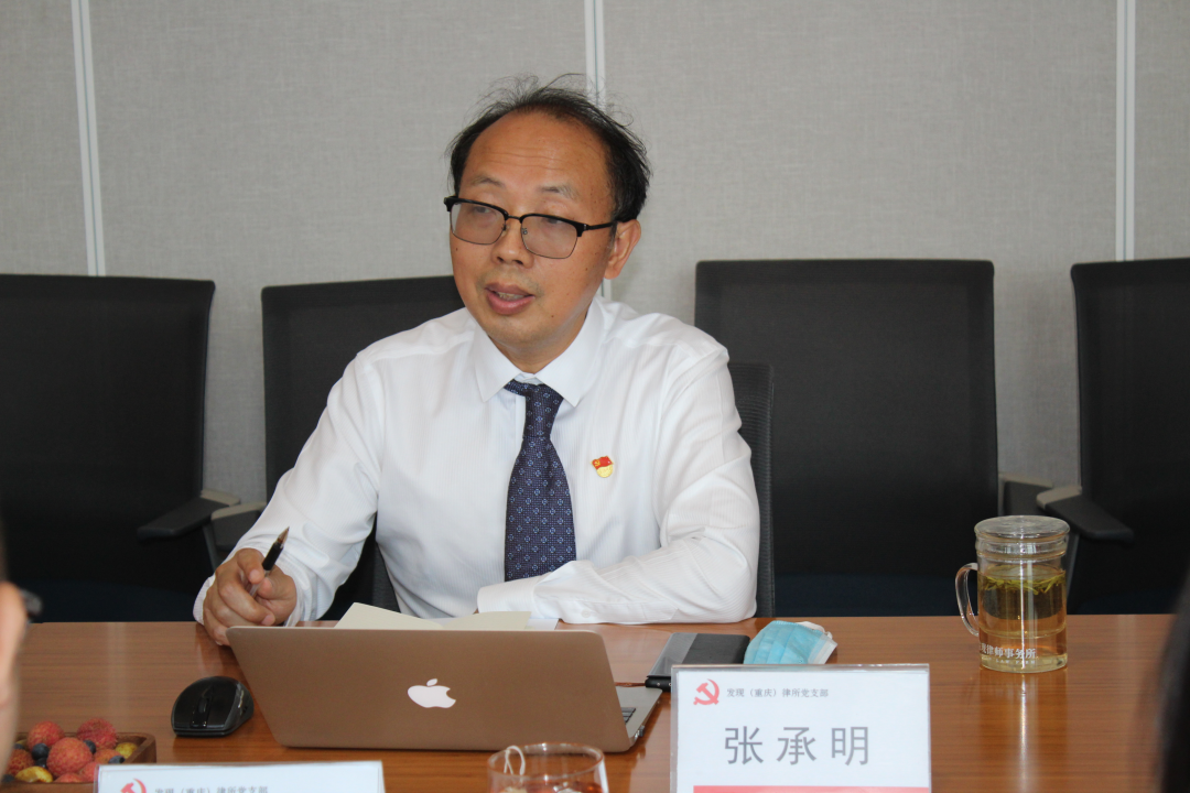 接着,杨坤书记,向张承明委员介绍了发现分所党支部成立及党建情况,同时汇报了发现分所党支部线上、线下组织党员律师学习重庆市第六次党代会的情况。