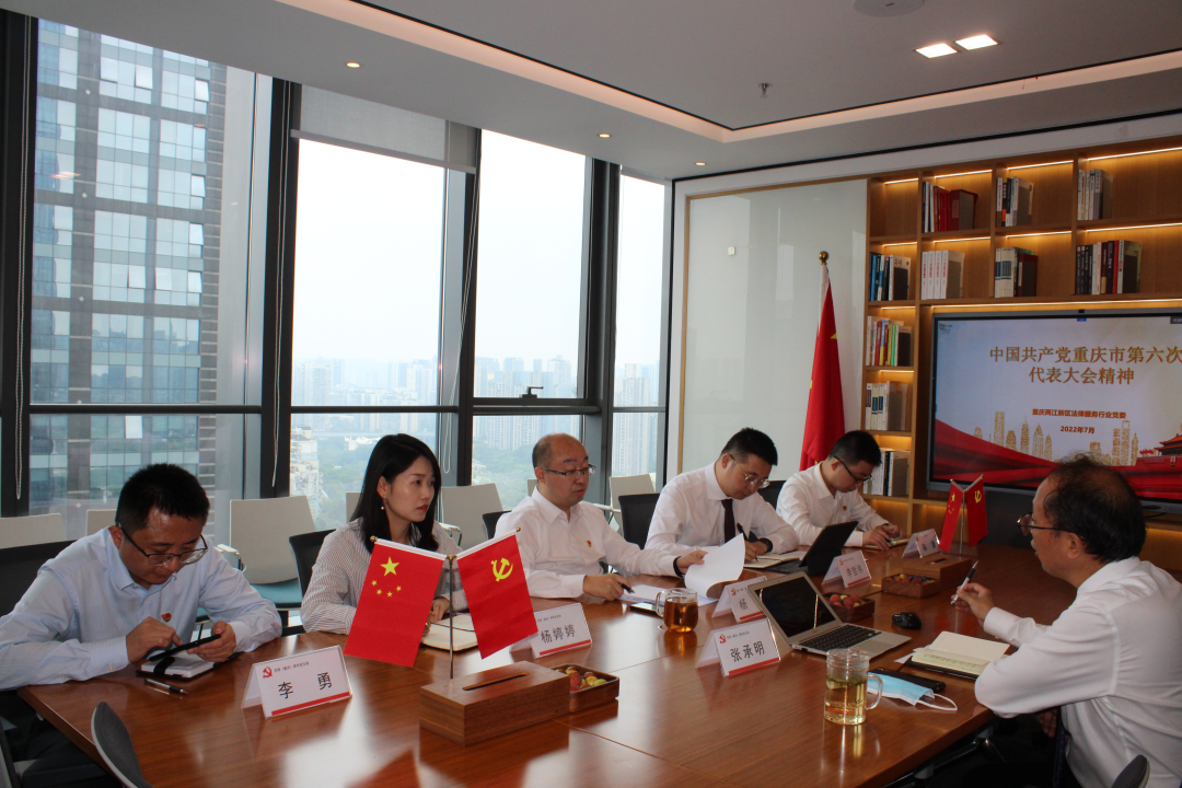 2022年7月1日下午,两江新区法律服务行业党委委员张承明莅临我所开展中国共产党重庆市第六次代表大会精神宣讲;发现(重庆)分所执行主任李哲伟主持此次宣讲活动,党员律师参与宣讲。