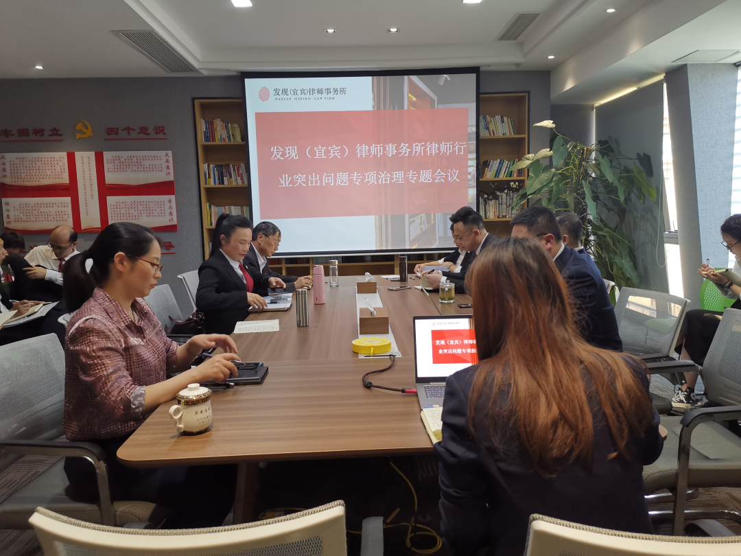 为推动自查核查环节走深走实、推动律师行业突出问题专项治理工作取得实效,4月29日下午,发现(宜宾)律师事务所开展律师行业突出问题专项治理工作专题会议。会议由副主任汪苹主持,我所全体律师参加。