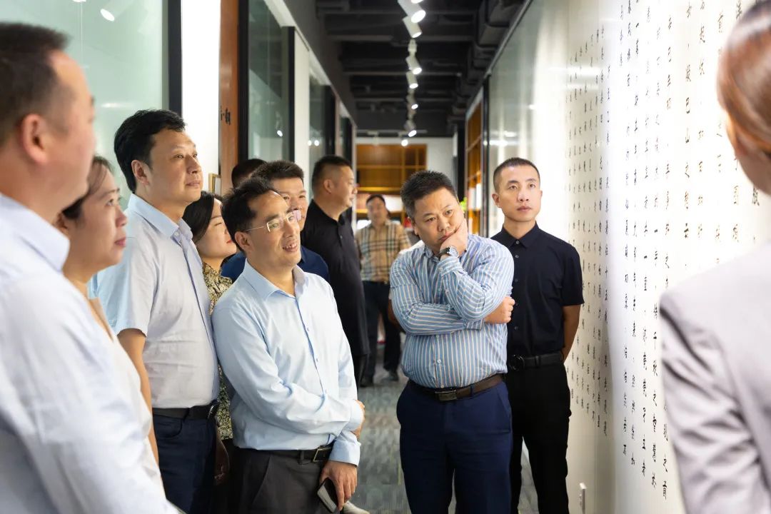 在我所行政专员陈谕菲的带领下,蔡泽文会长一行参观了发现书院及办公区域。移步易景,曲径通幽,大家徜徉在书海中,聆听着经典的法律文化故事。升级后的书院从五楼向六楼延伸,满园书香,智慧与科技交融。拾级而上,映入眼帘的是发现所特色的智慧矩阵。矩阵以俄罗斯方块为启发,结合书院场景,20根立柱上,围绕习总书记提出的中国梦、社会主义核心价值观、依法治国新理念共20个主题选取古今中外80句法谚雕刻其上,形成四通八达相互融合的“交互体”,代表着“和而不同”。大家赞叹不已,不时停下脚步拍照留念。