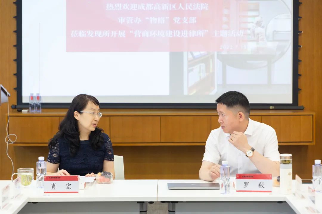 发现资讯 || 成都高新区人民法院审管办“物格”党支部与四川发现律师事务所联合开展“营商环境建设进律所”交流座谈会