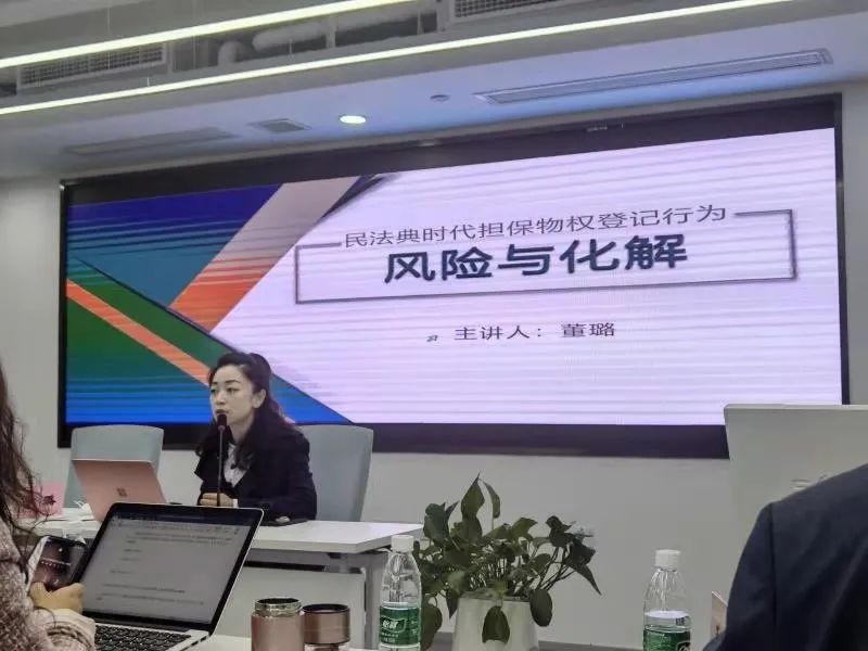 董璐副教授以“民法典时代担保物权登记行为之风险和化解”为题,分别从预告抵押登记、抵押登记的保护范围、未登记的质押权等三个方面深入分析了民法典施行后,各种担保物权登记行为存在的风险,并结合司法判例及新法规定探究风险化解渠道,以确保担保行为之效力。
