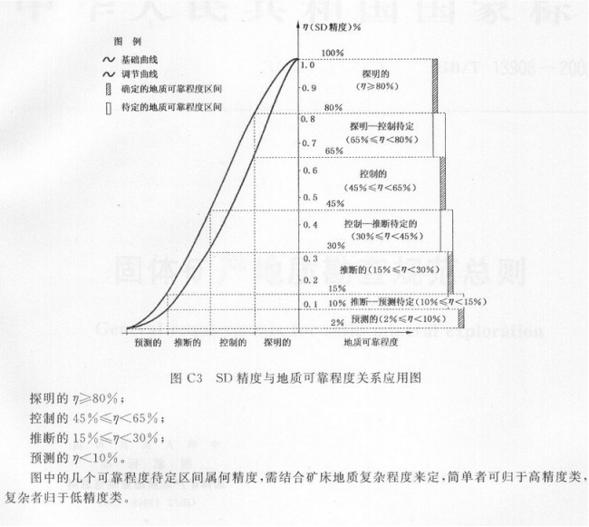 。矿产资源勘查过程中,不同阶段所作出的地质报告,精度与地质可靠程度关系应用图可得出不同结论(如下图),在司法实践中也基本上也会被采纳。故在再投资决策时,应对地质报告谨慎、区别对待,如预查阶段所做的预测资源量,其精度甚至不足10%,而这完全属于规范的合理范围内,若以预查报告为投资参考,则商业风险和诉讼风险都难以避免。