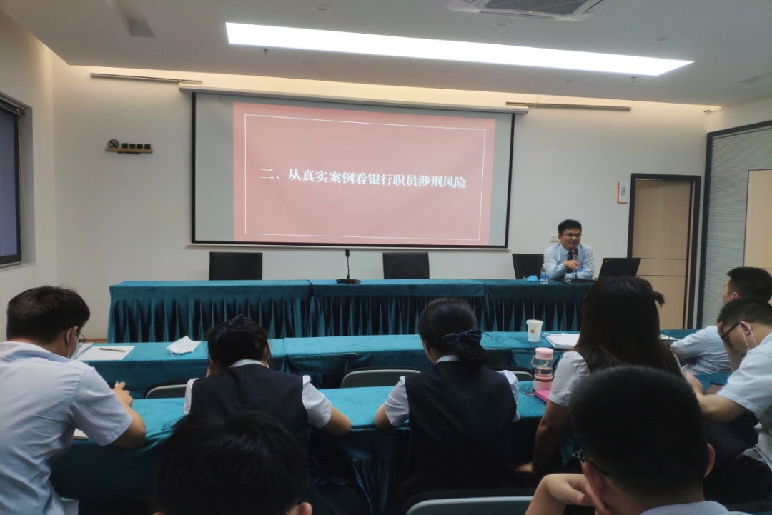 2022年5月26日,我所合伙人陆元辉律师应成都银行股份有限公司新津支行的邀请,在该行“青年·清廉”系列大讲堂中为工作人员开展了题为“强化银行工作人员纪法责任——常见银行工作人员涉刑犯罪预防”的培训分享。