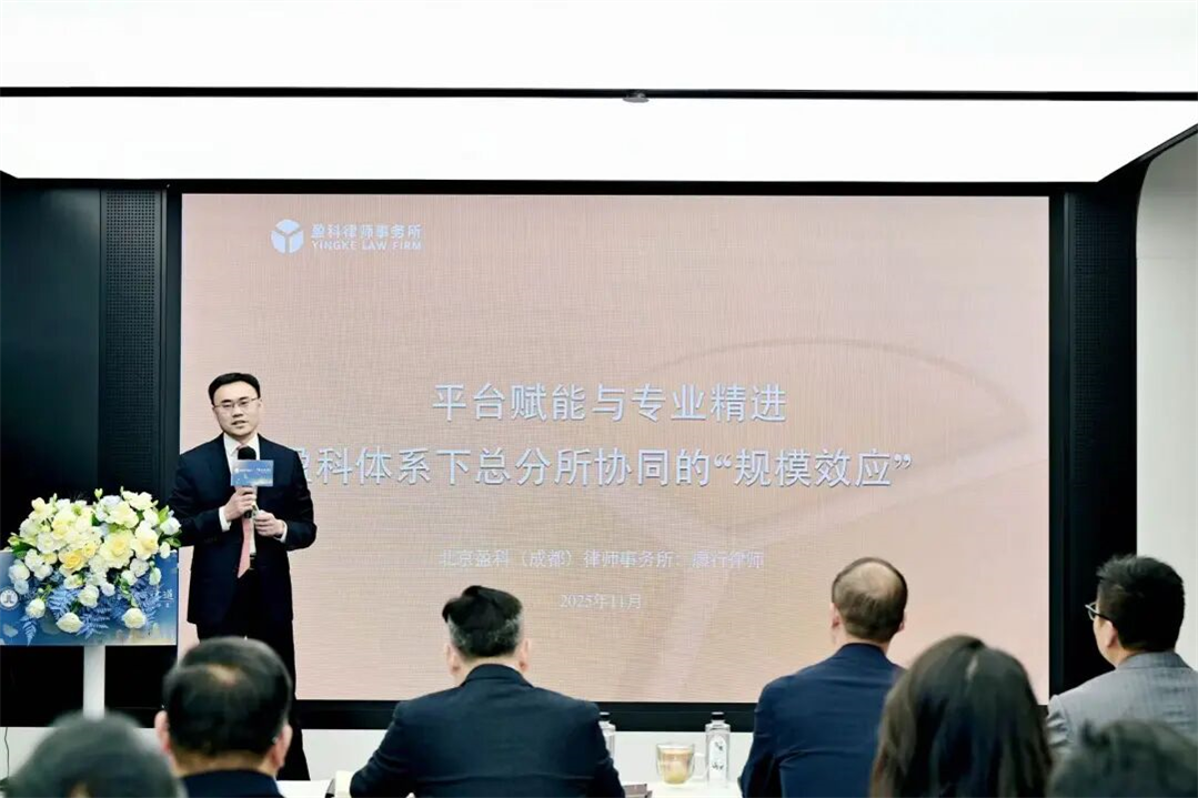 北京盈科律师事务所中国区董事会副主任、西南区管委会主任廖行通过《平台赋能与专业精进:盈科体系下总分所协同的“规模效应”》主题分享,解析了律所如何通过全国一体化平台整合资源,将规模优势转化为专业服务能力。