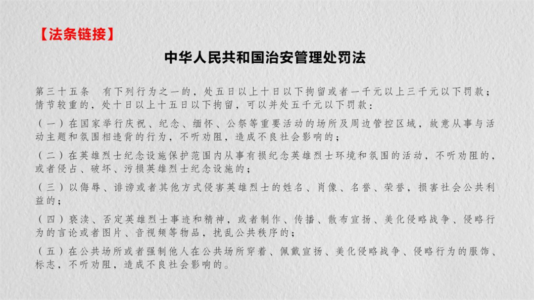 该条通过治安处罚强化对主流价值观、英雄烈士尊严的法律保护,填补旧法对未达刑事标准的侵害英雄烈士名誉荣誉行为的监管空白,引导社会尊重英雄烈士。