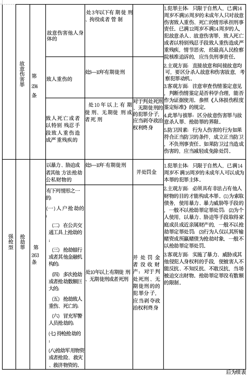 (二)暴力类犯罪《刑法》规定对照表